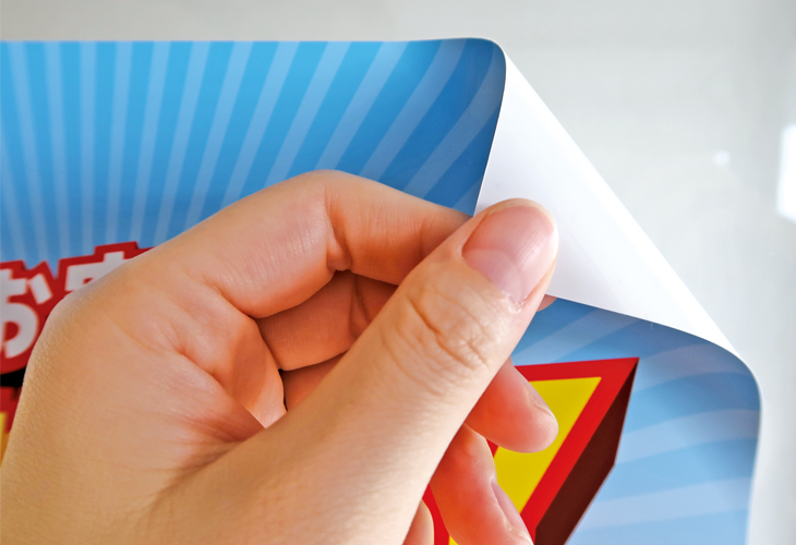 自己吸着性により張り付くため、糊残りがありません。カールしにくい素材なので、柱巻広告にも最適です。
